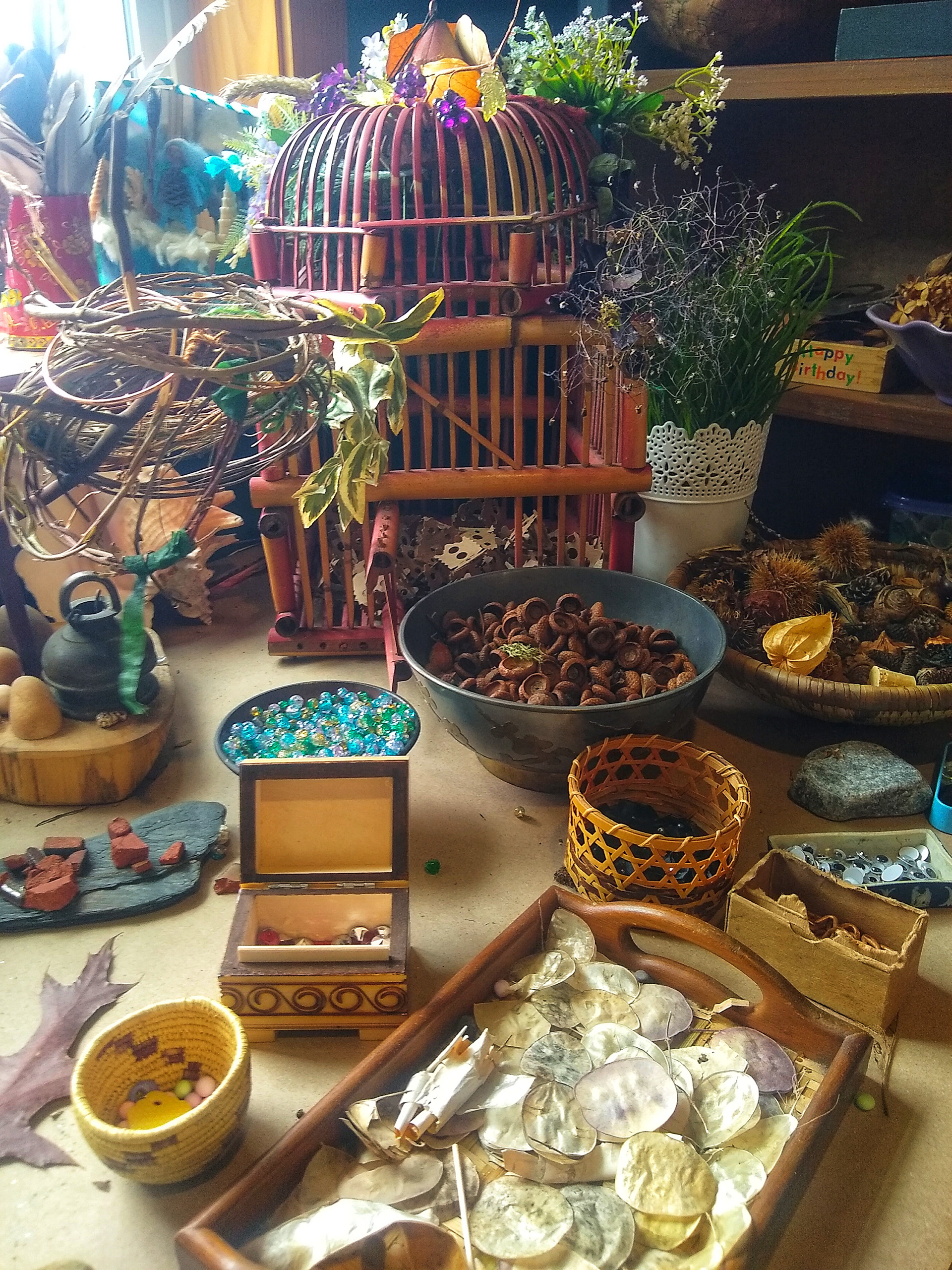 Project prompts, materials, and demos are jumping off points for open exploration in the studio. Participants are encouraged to follow their creative curiosities. Any kind of miniature or wildcraft art is encouraged throughout. Skills are taught as the need arises. (No need to work in a forest/fairy aesthetic - all types enjoy this class and are encouraged to follow their bliss!)