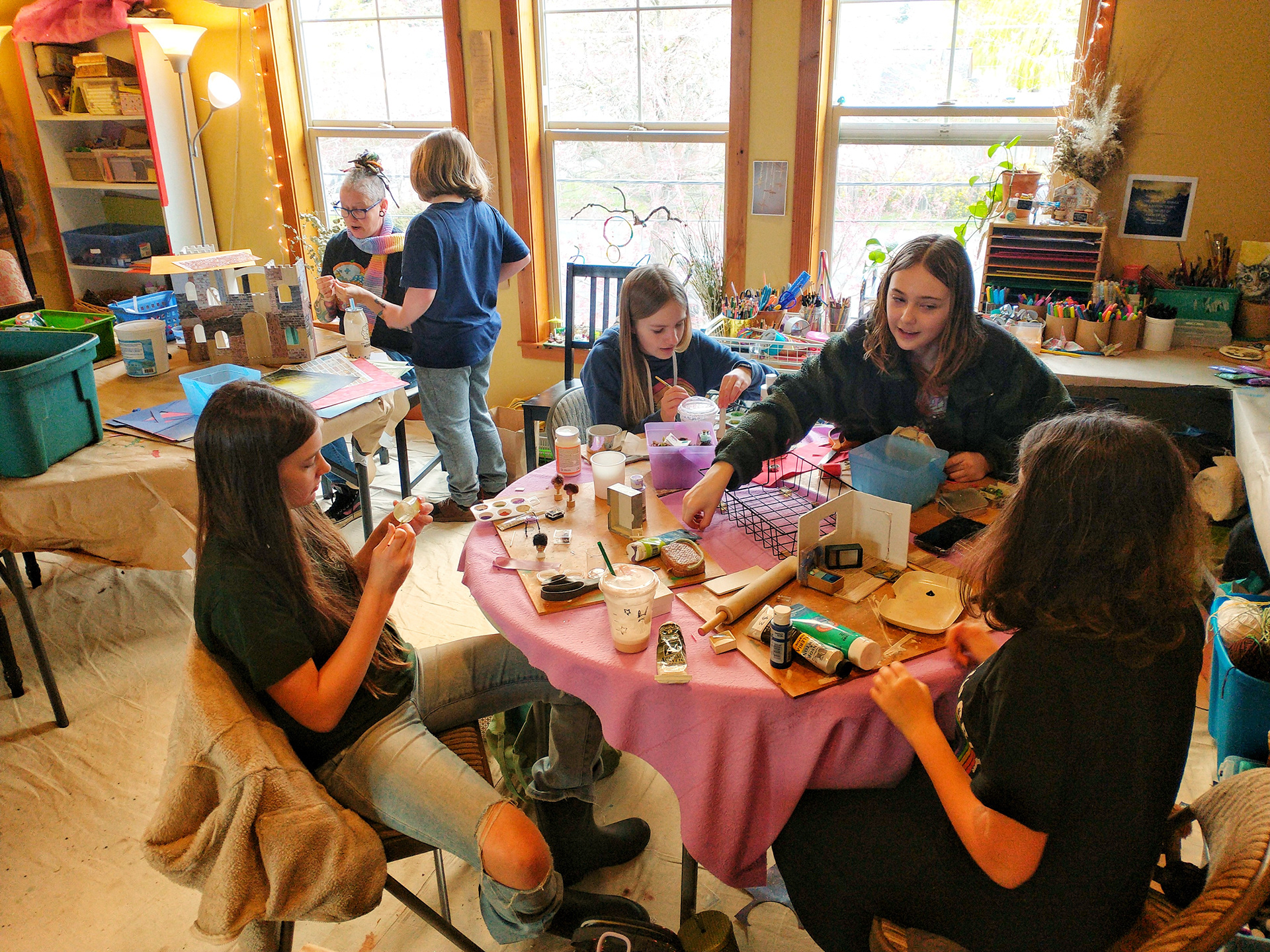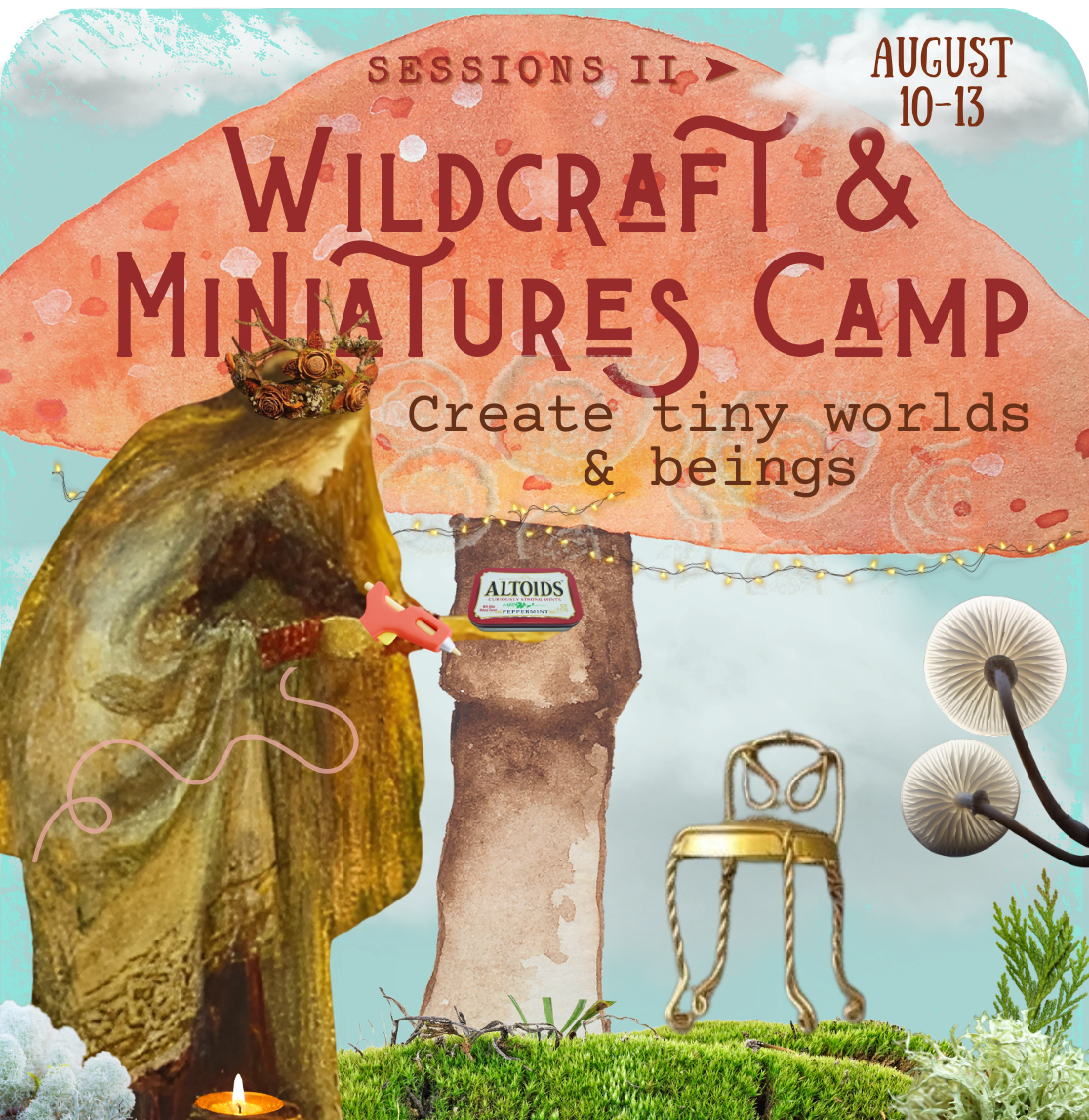 Project prompts, materials, and demos are jumping off points for open exploration in the studio. Participants are encouraged to follow their creative curiosities. Any kind of miniature or wildcraft art is encouraged throughout. Skills are taught as the need arises. This style of class is supportive of different ages and interests!