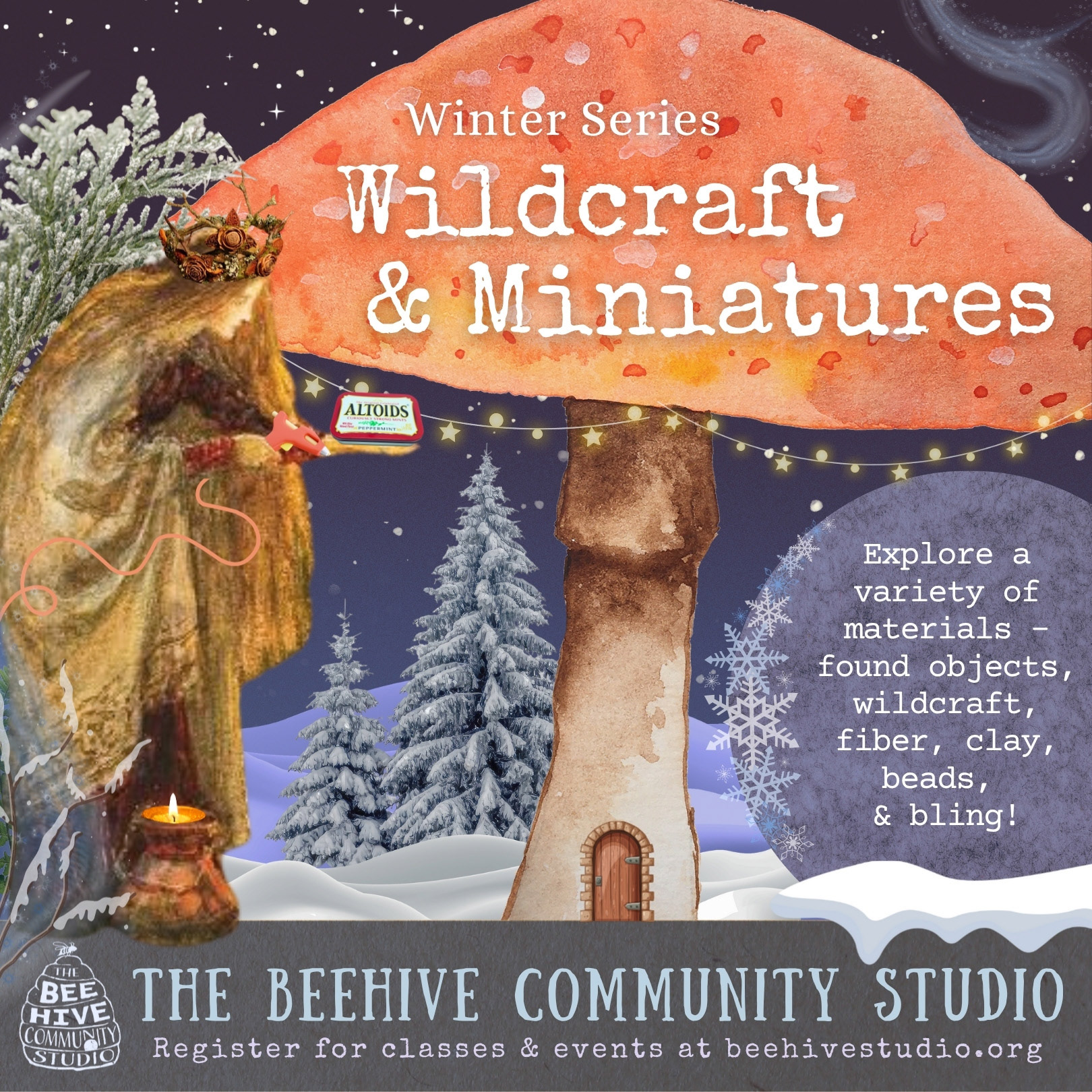 Project prompts, materials, and demos are jumping off points for open exploration in the studio. Participants are encouraged to follow their creative curiosities. Any kind of miniature or wildcraft art is encouraged throughout. Skills are taught as the need arises. (No need to work in a forest/fairy aesthetic - all types enjoy this class and are encouraged to follow their own unique interests.)